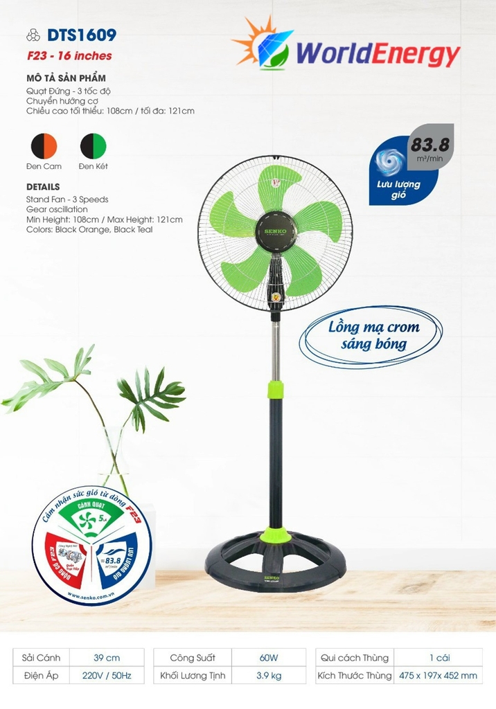 Thông số Quạt đứng thân sắt SenKo DTS1609 (DTS107)